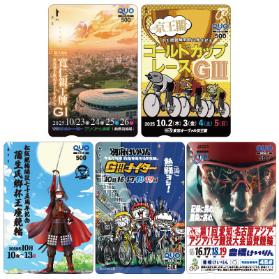 (抽選で10名様)10月開催「前橋」「京王閣」「松阪」「豊橋」「別府」のクオカードセットです。10月もキャンペーンを実施!エントリーをお見逃しなく!※景品の発送をもって発表に代えさせて頂きます。※画像はイメージです。実際の商品とは異なる場合があります。抽選日:2025年11月1日 -
