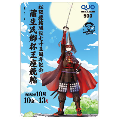 (抽選で20名様)10月10日(金)から10月13日(月・祝)まで松阪競輪場で開催される蒲生氏郷杯王座競輪(GIII) のオリジナルクオカード。※景品の発送をもって発表に代えさせて頂きます。※画像はイメージです。実際の商品とは異なる場合があります。抽選日:2025年11月1日 -