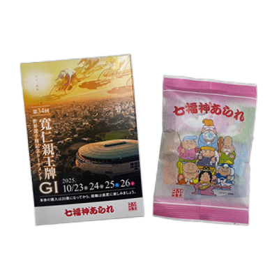 (抽選で60名様)前橋競輪のオリジナルパッケージ七福神あられを抽選でプレゼント!※景品の発送をもって発表に代えさせて頂きます。※画像はイメージです。実際の商品とは異なる場合があります。抽選日:2025年11月1日 -